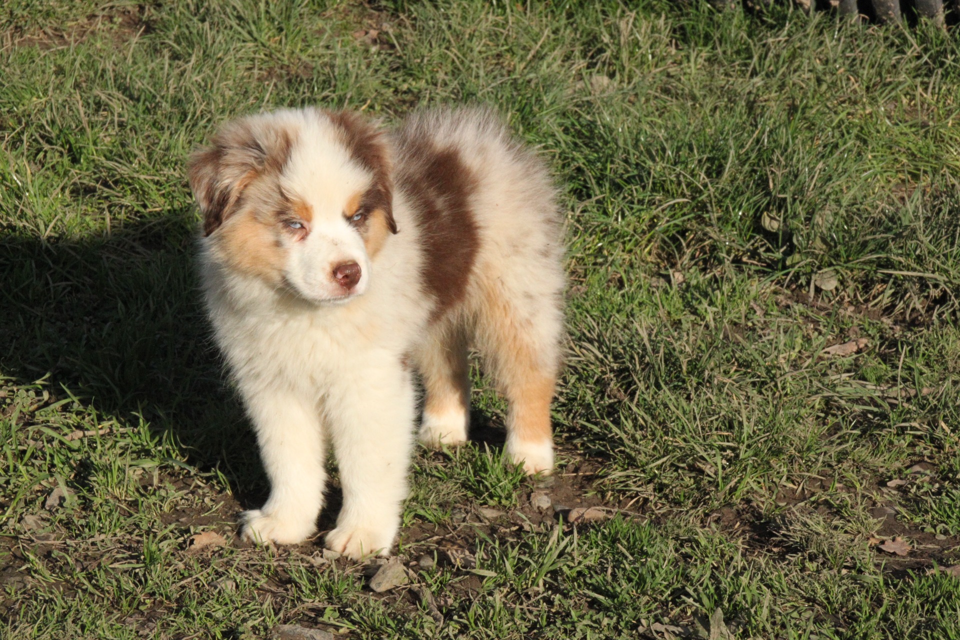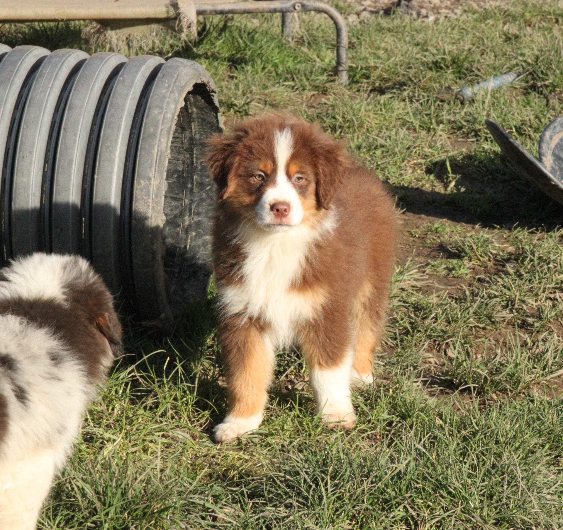 love est joli petit mâle rouge merle . il reste à l'élevage pour le moment . il est l'un des futurs étalons si son développement est correct. très proche de moi